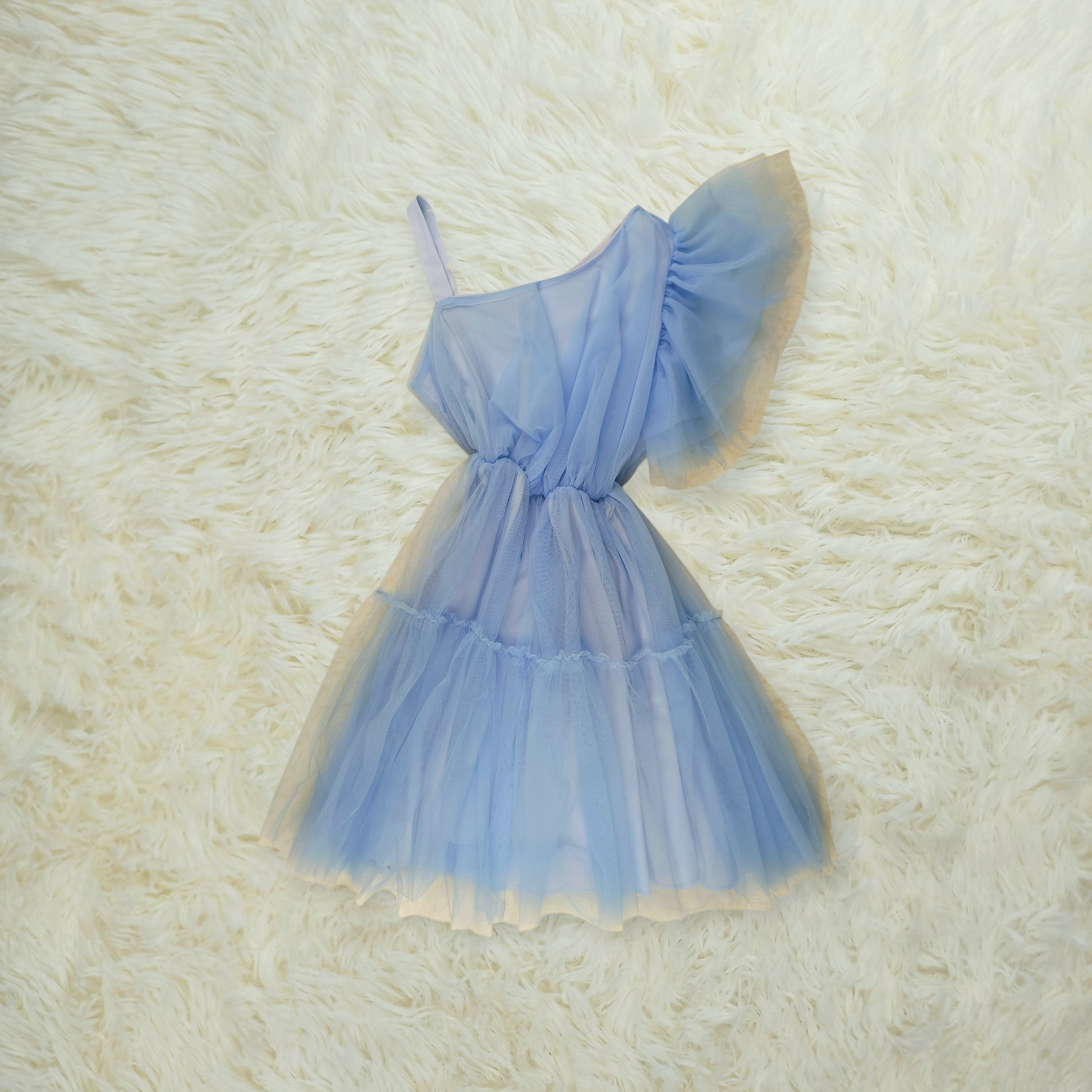 L’abito Cenerentola in tulle leggero è arricchito da una balza sulla spalla e da una bretellina sottile, con un elastico in vita che assicura una vestibilità comoda e giocosa. Foderato in cotone, garantisce morbidezza sulla pelle, perfetto per momenti di spensieratezza e divertimento. Made in Italy