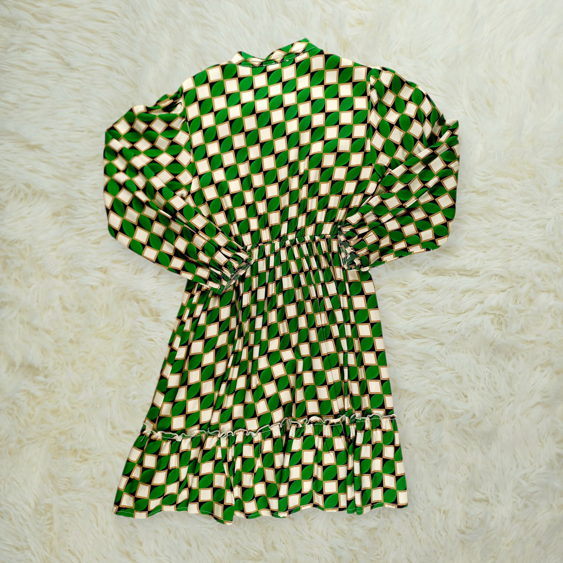 Questo abito Clarissa in mussola di cotone combina comfort e stile. La vita arricciata e la balza finale donano movimento, mentre i polsini elastici e il collo alla coreana con chiusura a fiocco aggiungono dettagli femminili e pratici. Perfetto per sentirsi libera e chic in ogni occasione.