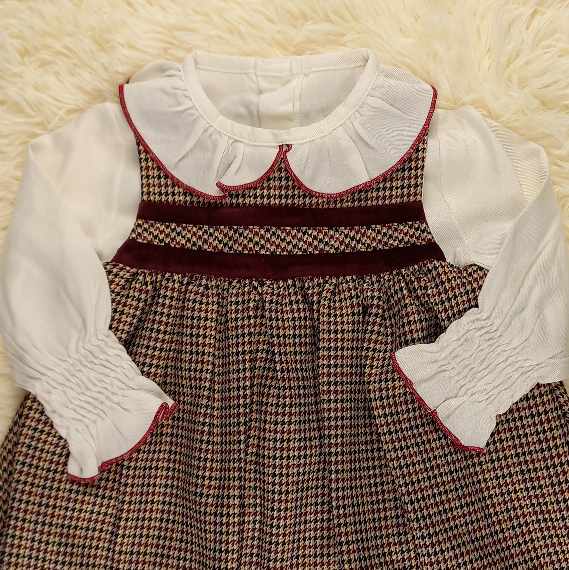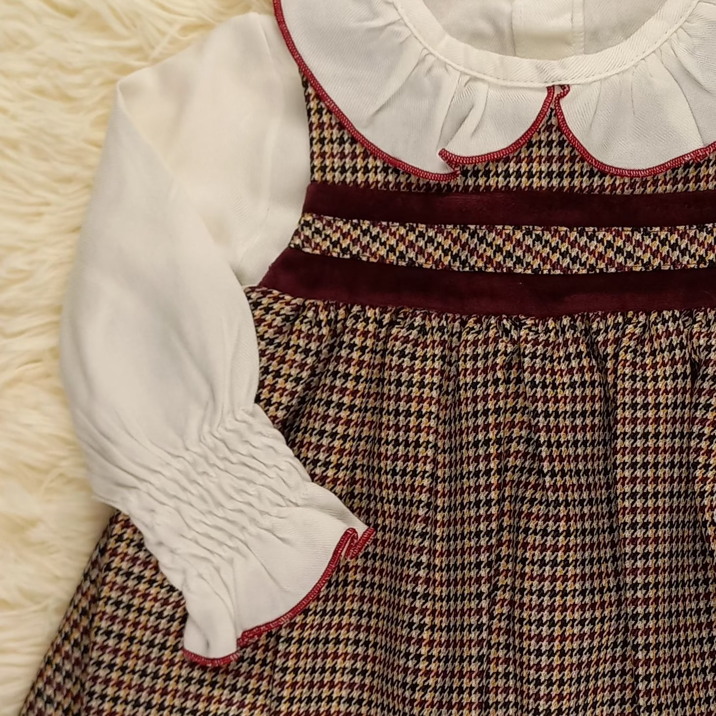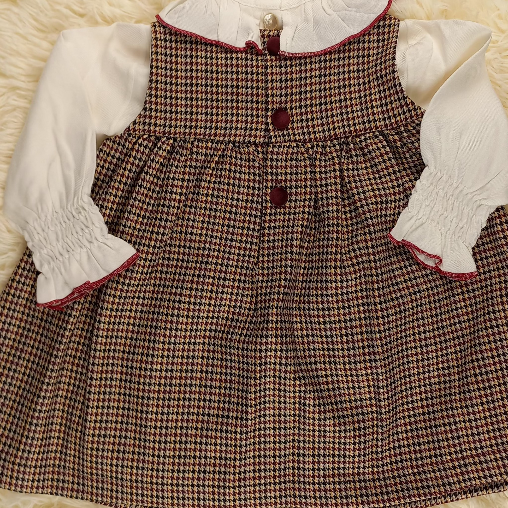Scopri il completo Carolina, un outfit di pura eleganza! Questo affascinante set combina un abito in micro scozzese arricchito da sofisticati inserti in velluto e bottoncini posteriori foderati con una camicia a body in flanella morbidissima. Il collo tondo e il ricamo coordinato in tinta creano un'armonia visiva perfetta, regalando un look raffinato. Ideale per chi ama lo stile, senza rinunciare al comfort. Un'opzione versatile che trasforma ogni occasione in un momento speciale.