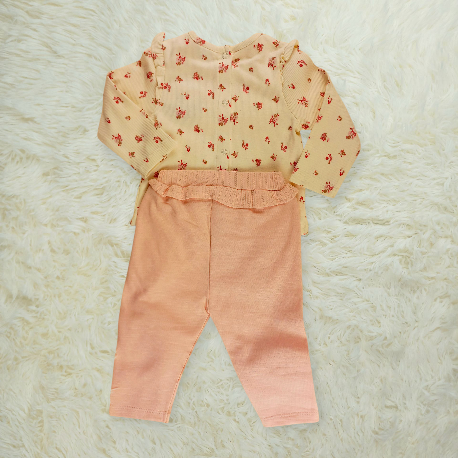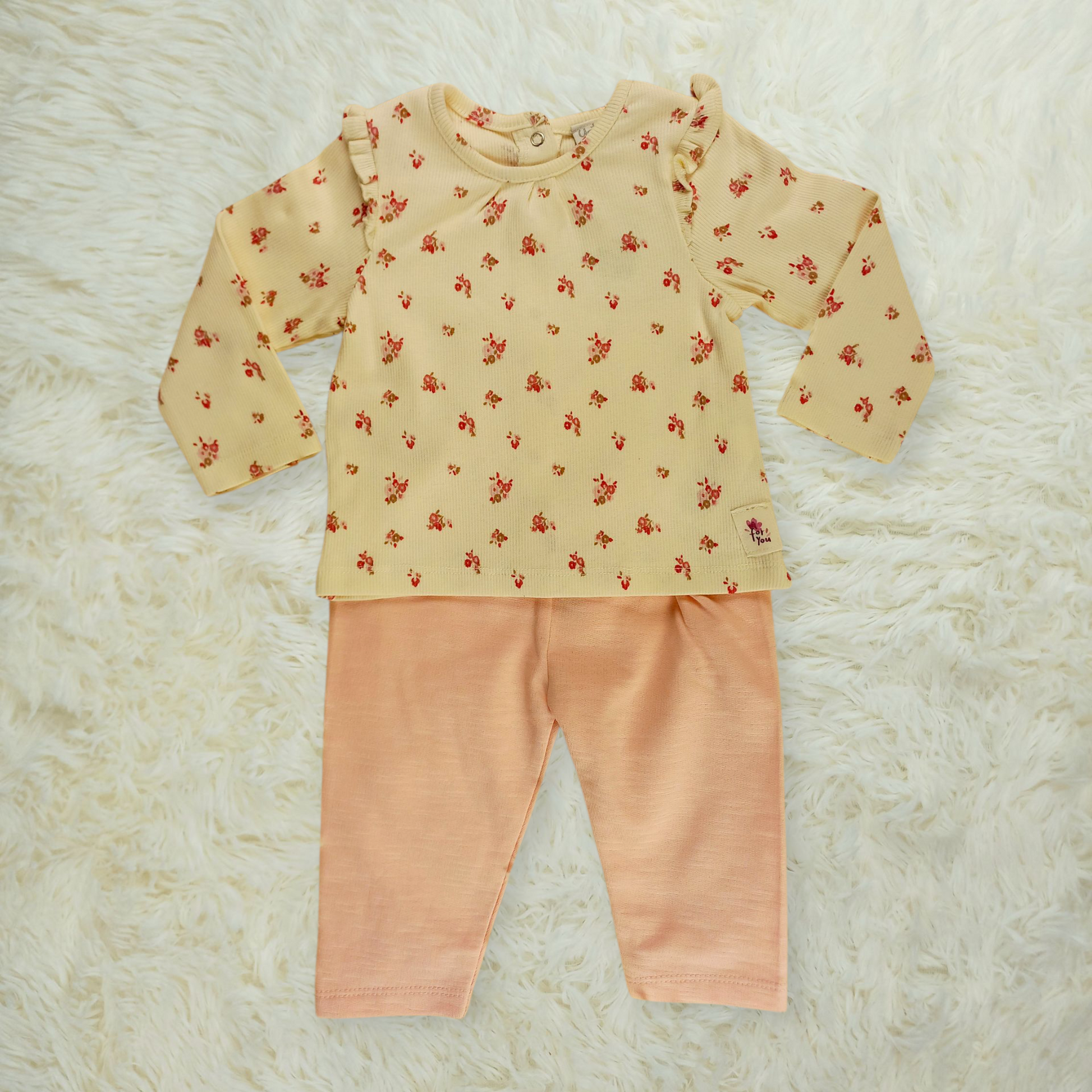 Completo Clotilde: il duo perfetto per la tua piccola! Maglia in caldo cotone con un delizioso motivo a costine e bottoncini posteriori che rendono il cambio un gioco da ragazzi. Il pantalone, morbidissimo e accogliente, con balza nel giro vita ha una vestibilità comoda. Ideale per coccolare la tua bimba con stile e comfort, dalla mattina alla sera.