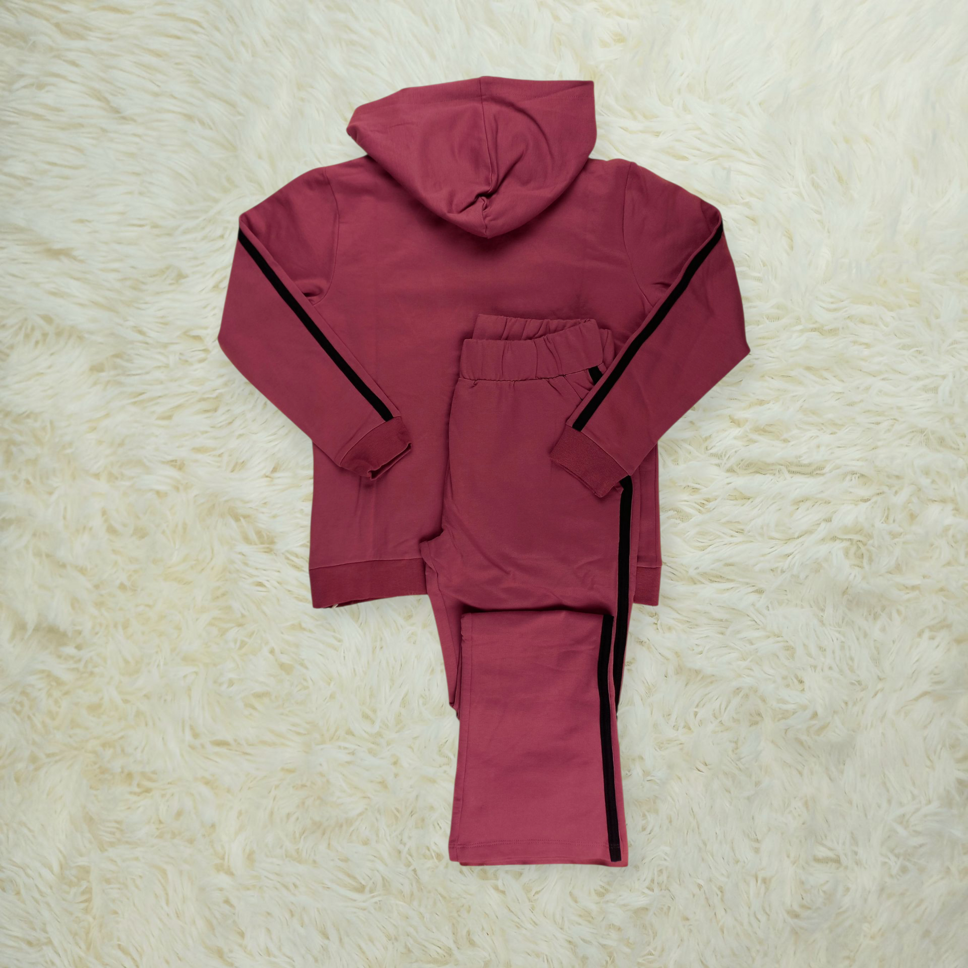 Il Completo Maria è in felpa felpata leggera ed unisce comfort e stile con il suo pantalone a zampetta dotato di tasche scese ed elastico in vita per una vestibilità comoda. La felpa, con zip e cappuccio, include taschine laterali comodissime. Questo completo è ideale per muoversi con praticità ogni giorno. Made in Italy