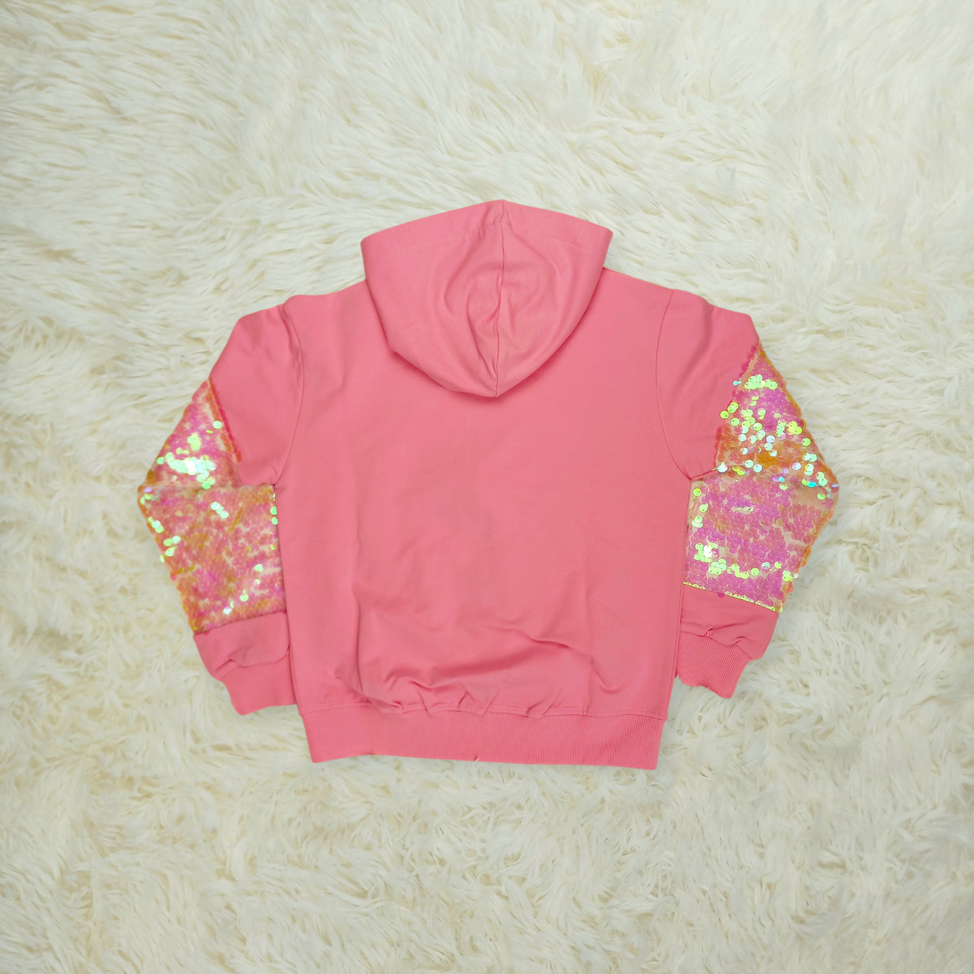La felpa Jasmine unisce comfort e allegria con il suo tessuto garzato morbido, zip frontale e cappuccio pratico. Le maniche sono impreziosite da inserti foderati di paillettes, perfetti per aggiungere un tocco brillante e divertente al tuo look quotidiano. La vestibilità regolare assicura libertà di movimento e comodità in ogni occasione.