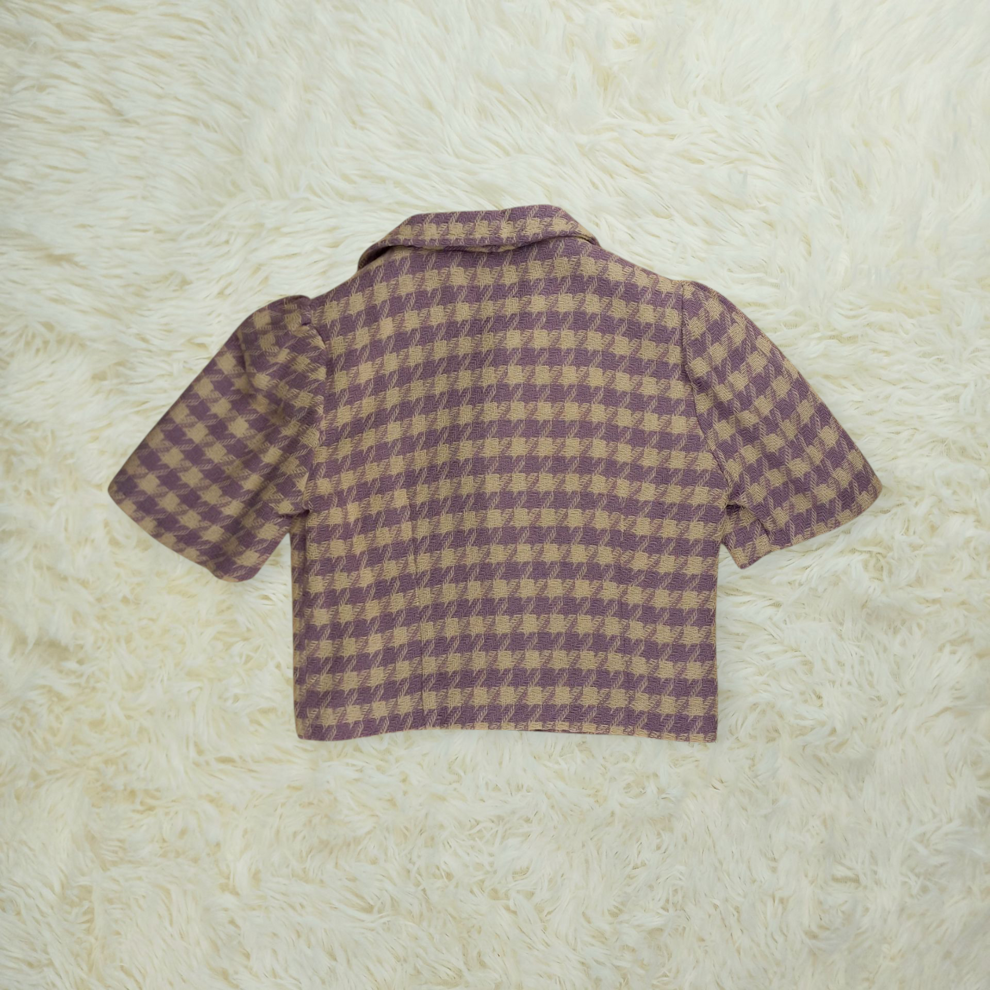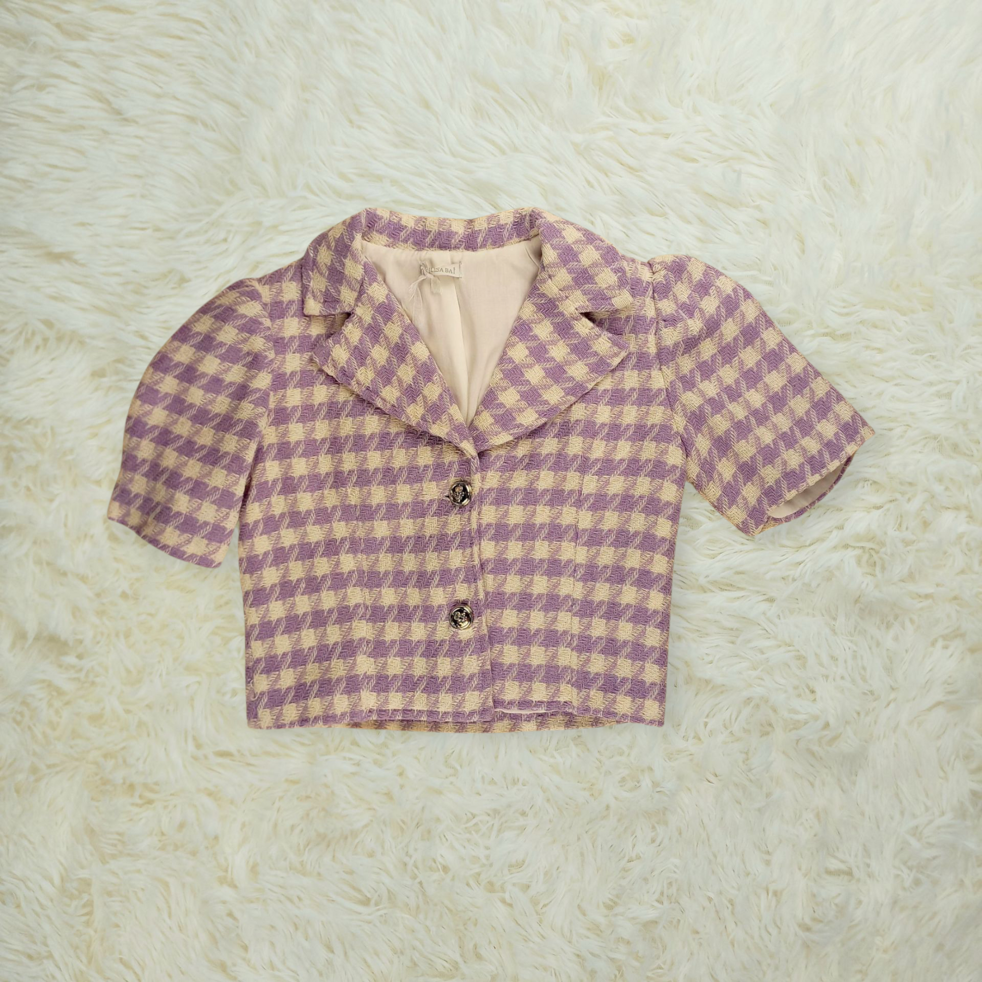 La giacca Viola corta con due bottoni e mezza manica è perfetta per aggiungere un tocco vivace e originale al tuo look. Leggera e versatile, ti permette di giocare con gli abbinamenti, mantenendo sempre uno stile fresco e divertente. Ideale per chi ama distinguersi con un tocco di colore e personalità!